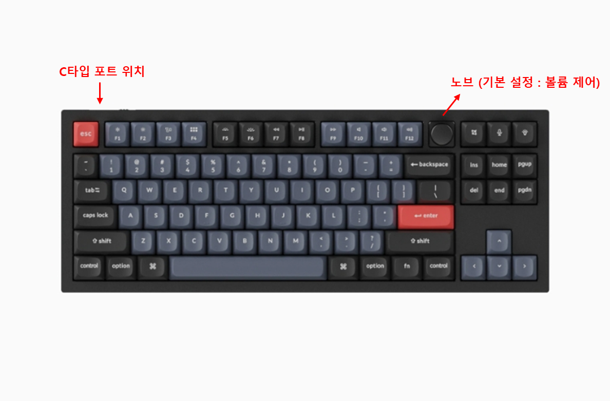 - 노브의 위치가 기존 키보드의 F12에 위치해있어 사용 시 적응이 필요해 보임 (노브 위치는 아래 이미지 참고)